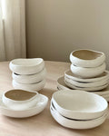Tillverkat i tåligt porslin med modern form – perfekt för att lyfta både vardagsmiddagar och festdukningar. De generösa skålarna och det eleganta uppläggningsfatet gör det enkelt att servera allt från sallader till huvudrätter.