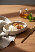 Lyft din dukning med detta ovala skålset från Bricard Bondy-serien. Skålarna har en mjuk form och en elegant taupefärg som passar lika bra till vardag som till festligare tillfällen.