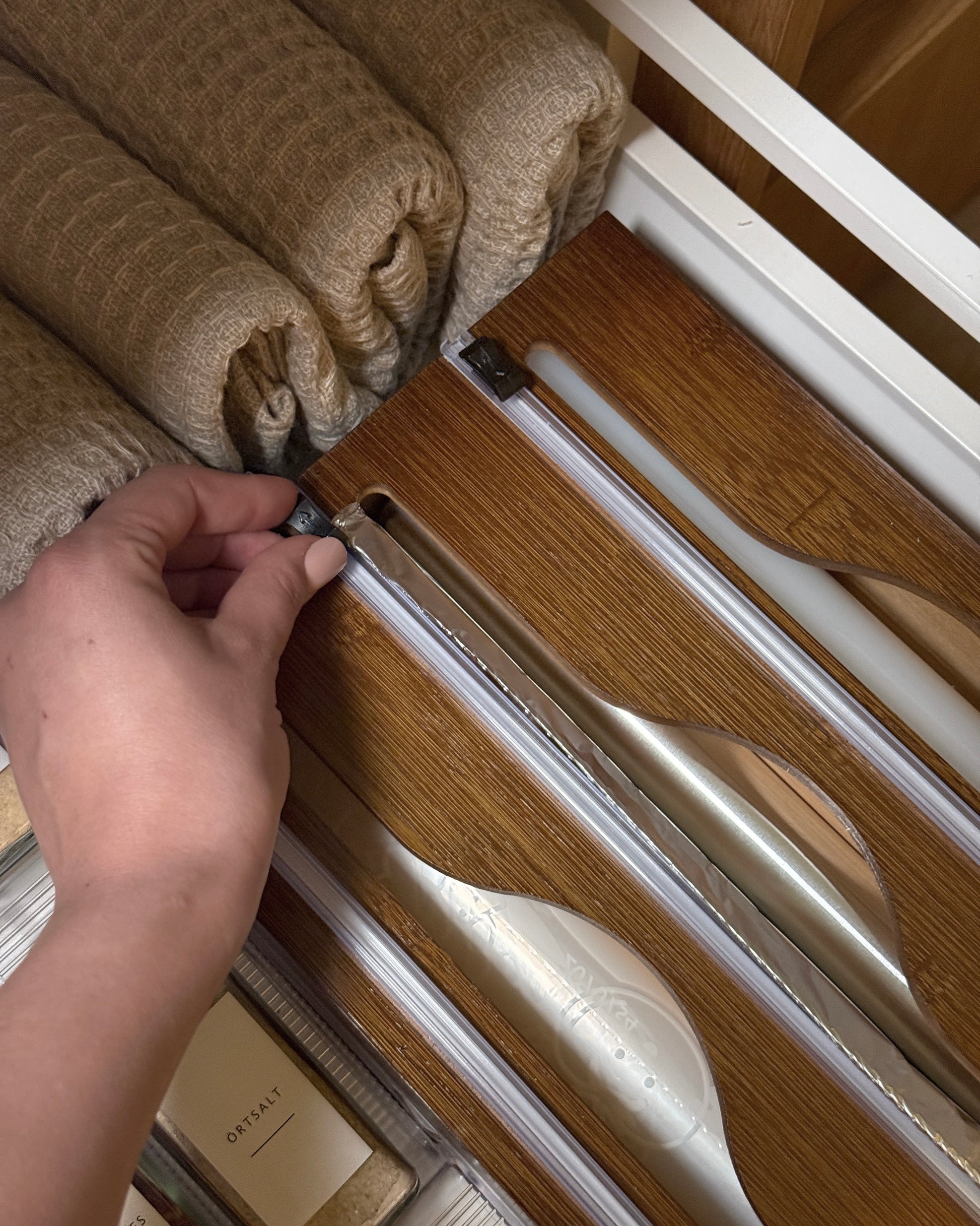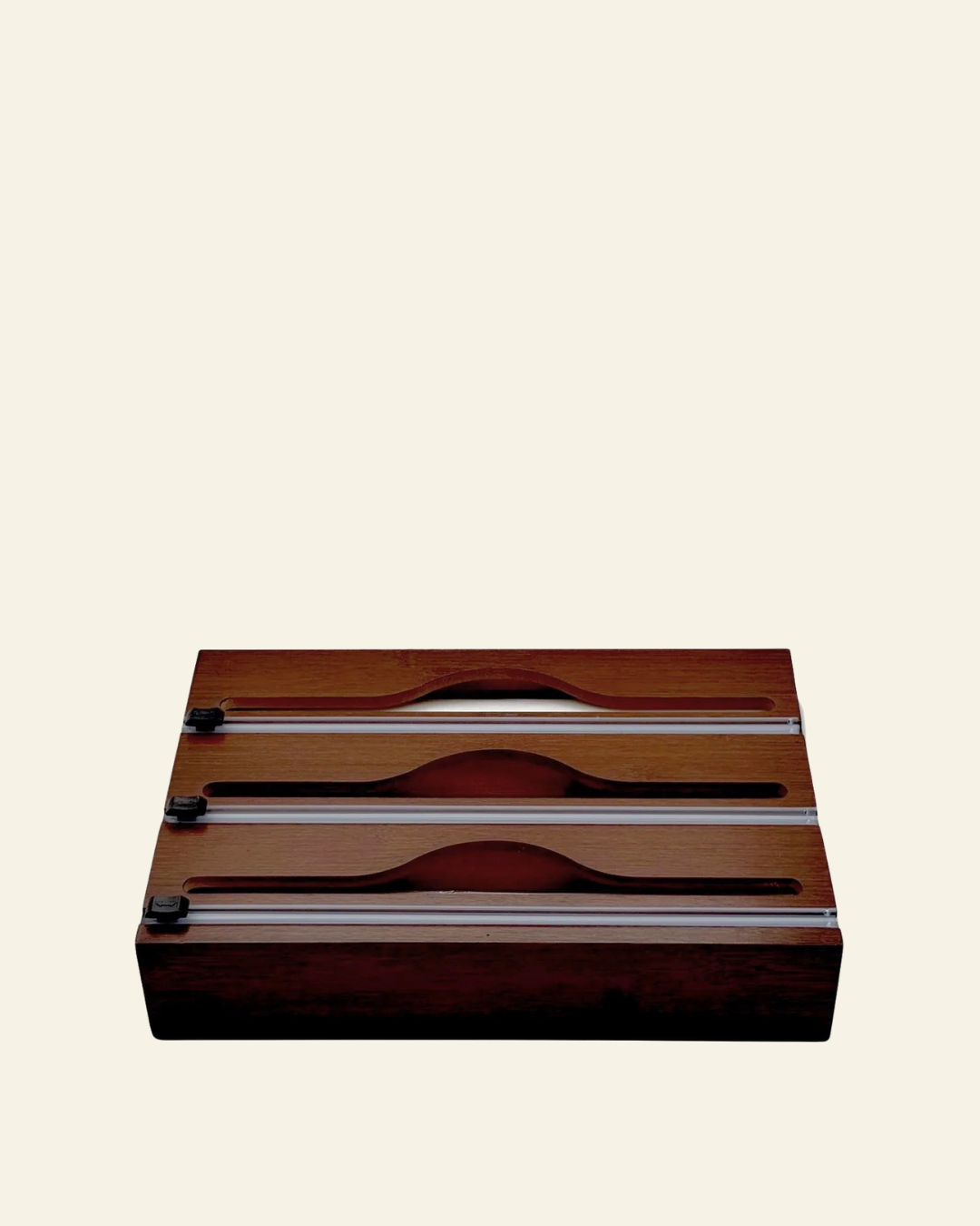 Organisera ditt kök med stil och funktionalitet med vår 3-i-1 folie- och plastfolie-dispenser bambu i valnötsfärg. Denna eleganta foliehållare har plats för plastfolie, aluminiumfolie och bakplåtspapper, och har dessutom inbyggd skärare i varje fack, för jämn och enkel avskärning utan trassel.