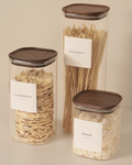 Burken finns i tre olika storlekar för att rymma allt från småsaker till större torrvaror. Tack vare den stapelbara och lufttäta designen håller du innehållet fräscht samtidigt som du sparar plats och skapar ordning – i både kök och badrum.