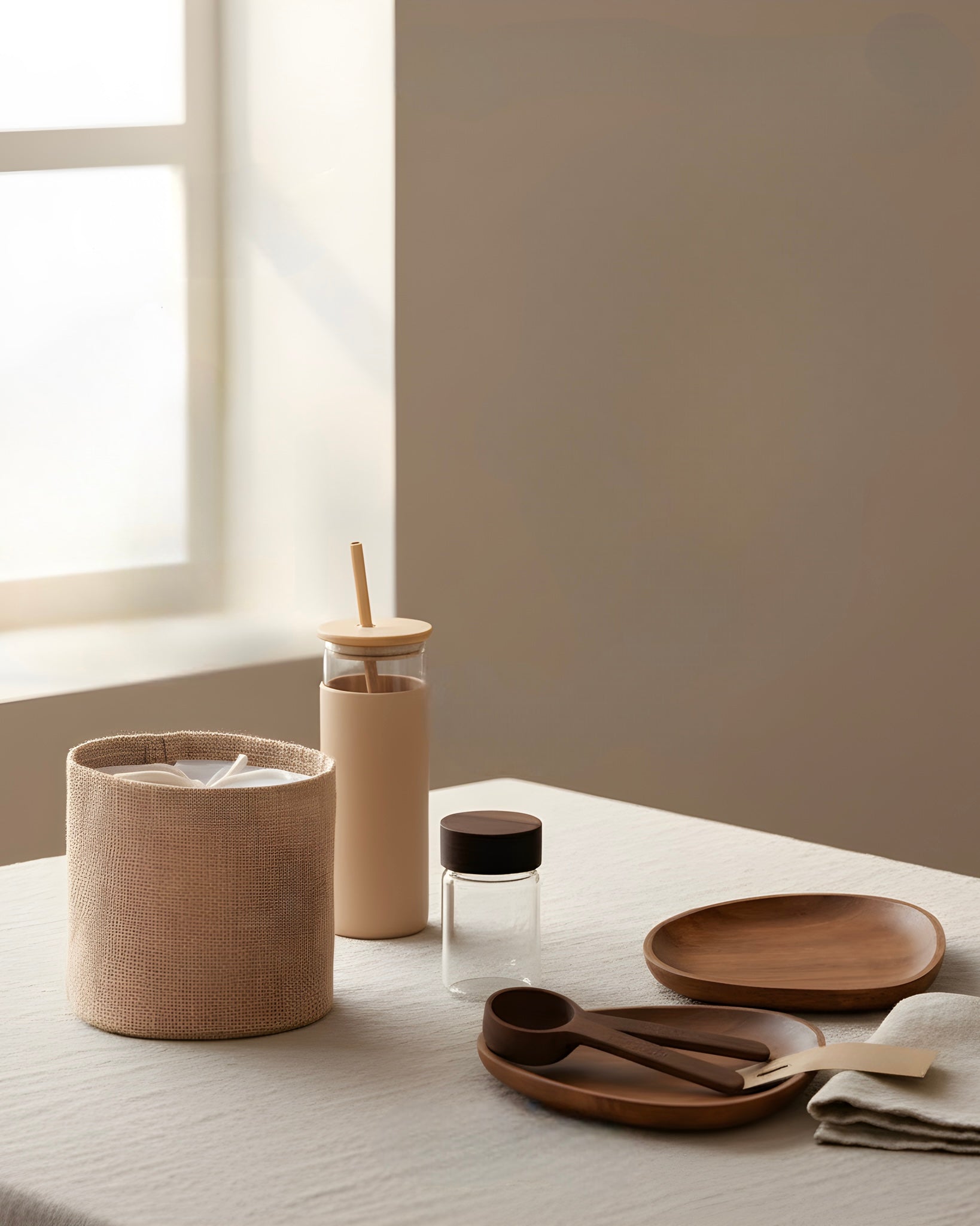 • Träskedar i två storlekar – en större för kaffe i större burkar och en mindre för te eller socker i mindre burkar, hemma eller på jobbet.