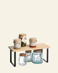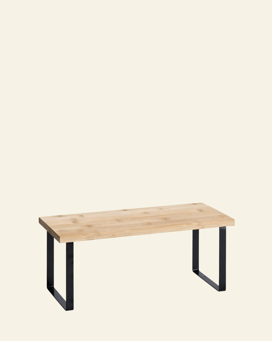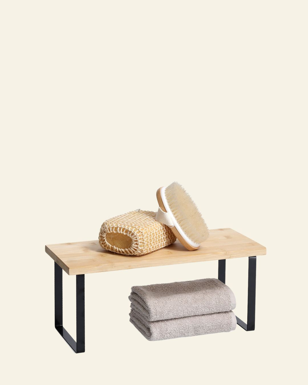 Organisera ditt hem på ett enkelt och stilfullt sätt med denna moderna hylla i en elegant mix av metall och bambu. Hyllan skapar direkt extra förvaringsutrymme där du behöver det – oavsett om det är i badrummet för handdukar, i köket för kryddor eller i kontoret för ordning bland småsaker. Den levereras helt färdigmonterad, vilket innebär att du slipper verktyg och tidskrävande montering. De två robusta metallfötterna ger stabilitet och gör hyllan trygg även för ömtåliga glas och andra känsliga föremål. En praktisk och dekorativ förvaringslösning för hela hemmet.