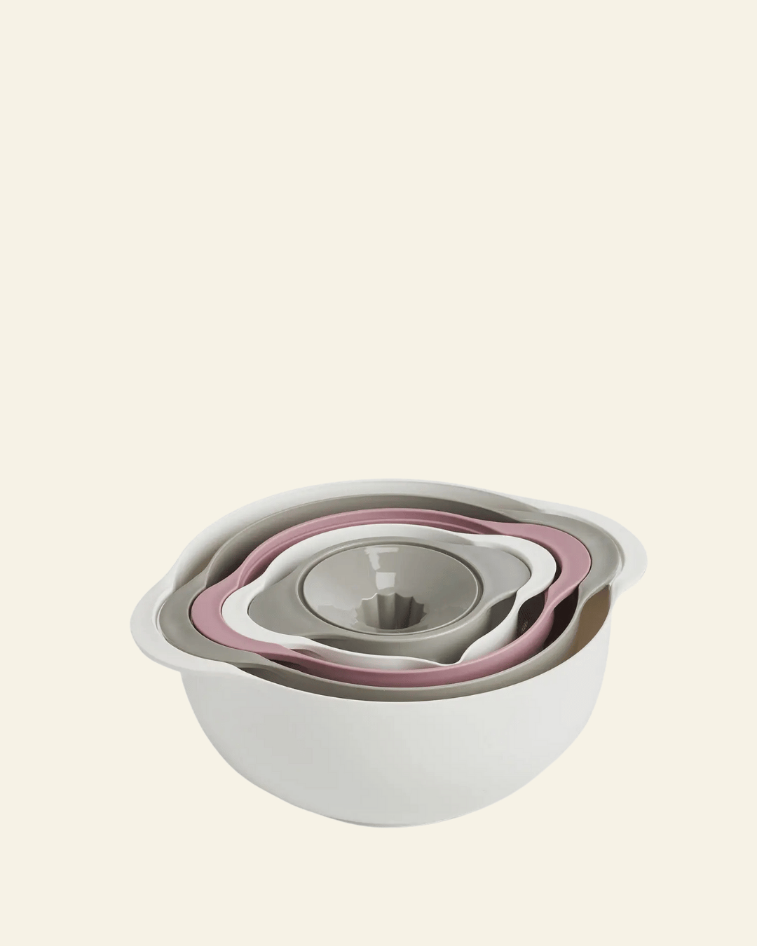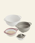 Tack vare den stapelbara designen tar setet mycket liten plats i köksskåpet – perfekt för mindre kök eller för dig som vill hålla en minimalistisk och organiserad köksmiljö. Kökssetet finns i tre moderna färger och kombinerar funktion med stil, vilket gör det till ett både praktiskt och snyggt tillskott i köket