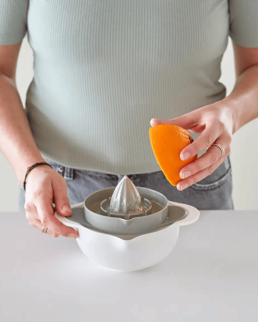 - 5-i-1-funktion – citruspress, sil, pastaslidare, uppsamlingsbricka och skål i ett enda set