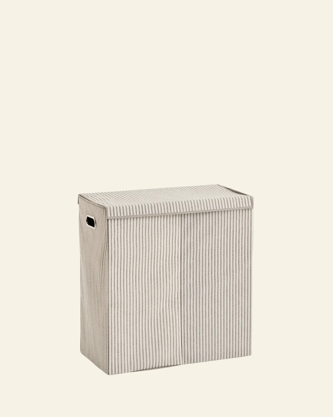 Ge ditt hem en organiserad och stilren känsla med denna tvättkorg i tidlös beige design. Med två separata fack blir det enkelt att sortera tvätten redan från start, vilket sparar både tid och energi i vardagen.