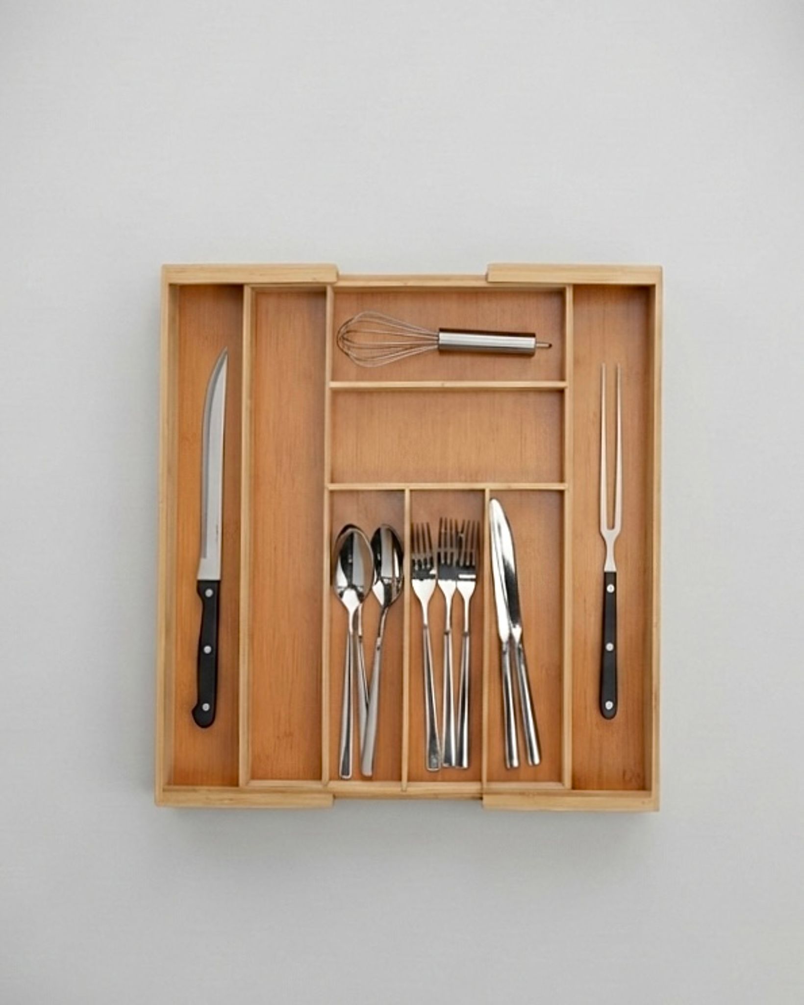 Upptäck den justerbara besticklådan i bambu - den perfekta lösningen för alla dina organiseringsbehov. Tillverkad i hållbart bambumaterial, erbjuder denna besticklåda både stil och funktion. Med en flexibel design som anpassas efter dina behov, kan du enkelt justera lådan för att rymma 6 till 8 fack. Detta gör den idealisk för att sortera allt från gafflar och knivar till sminkborstar och kontorsmaterial.