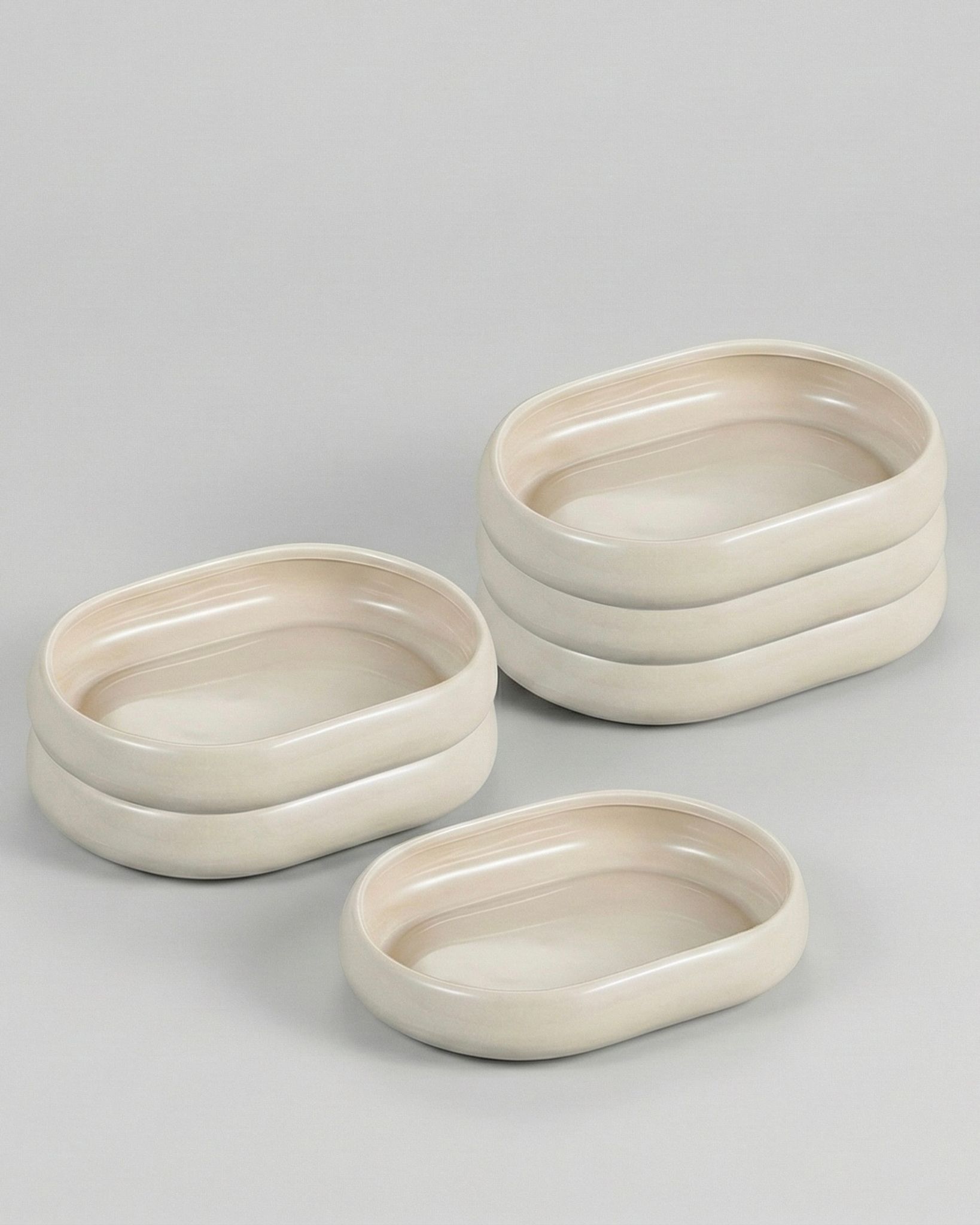 Den ovala formen och den subtila färgtonen gör att skålarna enkelt kan kombineras med övriga delar i Bondy-serien, vilket skapar en harmonisk helhet på bordet. De är idealiska för att servera snacks, såser eller mindre tillbehör.