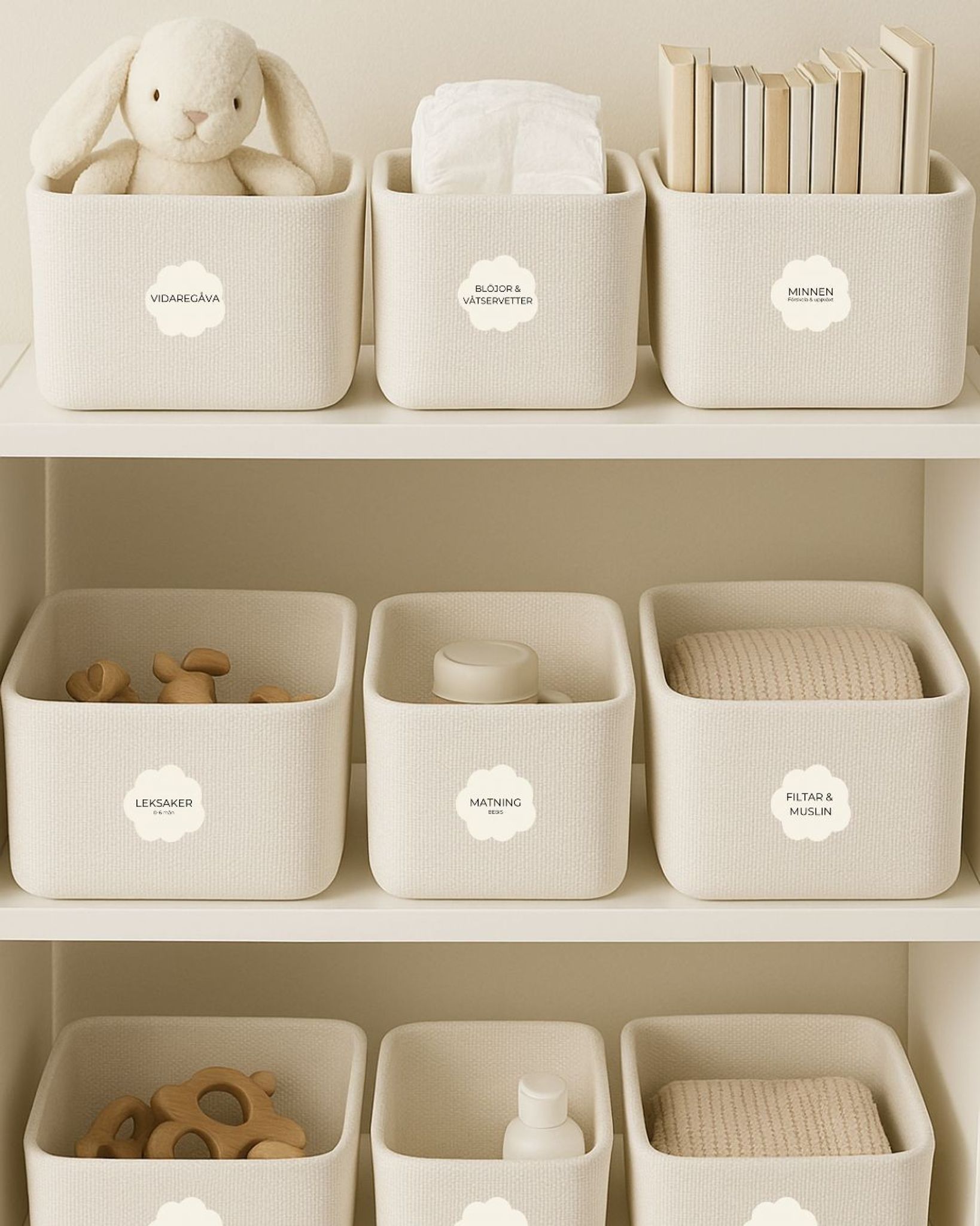 Få ett mer organiserat hem med våra praktiska och snygga självhäftande etiketter för bebiskläder. Dessa etiketter mäter 5x5 cm och är perfekta för att märka upp förvaringslådor i barnrummet, garderoben, källarförrådet eller tvättstugan. Med tydlig märkning får du snabbt överblick och sparar tid i vardagen.
