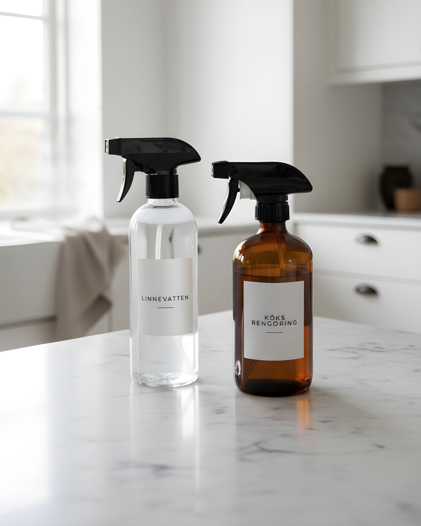 Dessa etiketter är olje- och vattentåliga, vilket gör dem hållbara och långvariga även i fuktiga miljöer. Använd dem för att enkelt identifiera flaskor för köksrengöring, diskmedel, och andra rengöringsmedel. Möjligheterna är många, och du får en stilren och organiserad miljö i ditt hem.