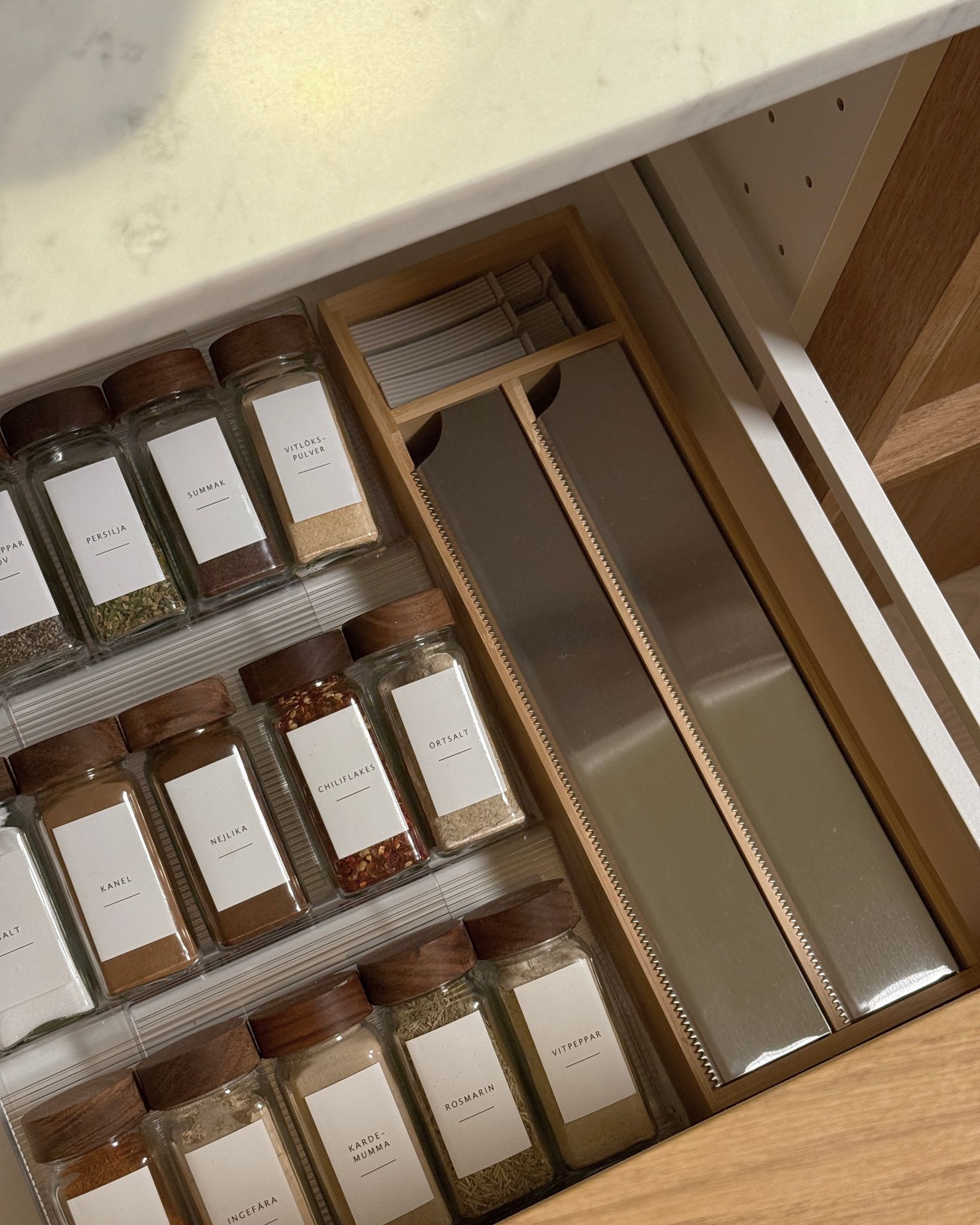 Förutom att hålla din folie och plast organiserad, erbjuder denna box ett extra fack för småredskap, vilket gör den till en ultimat multifunktionell lösning för ditt kök. Oavsett om du förvarar plastfolie, aluminiumfolie eller bakplåtspapper, kommer vår folieförvaringsbox att förena stil med funktion. Material: Högkvalitativ bambu och rostfritt stål skyddar folien mot smuts och fukt Extra förvaringsfack för småredskap Stilren design som passar i alla kök