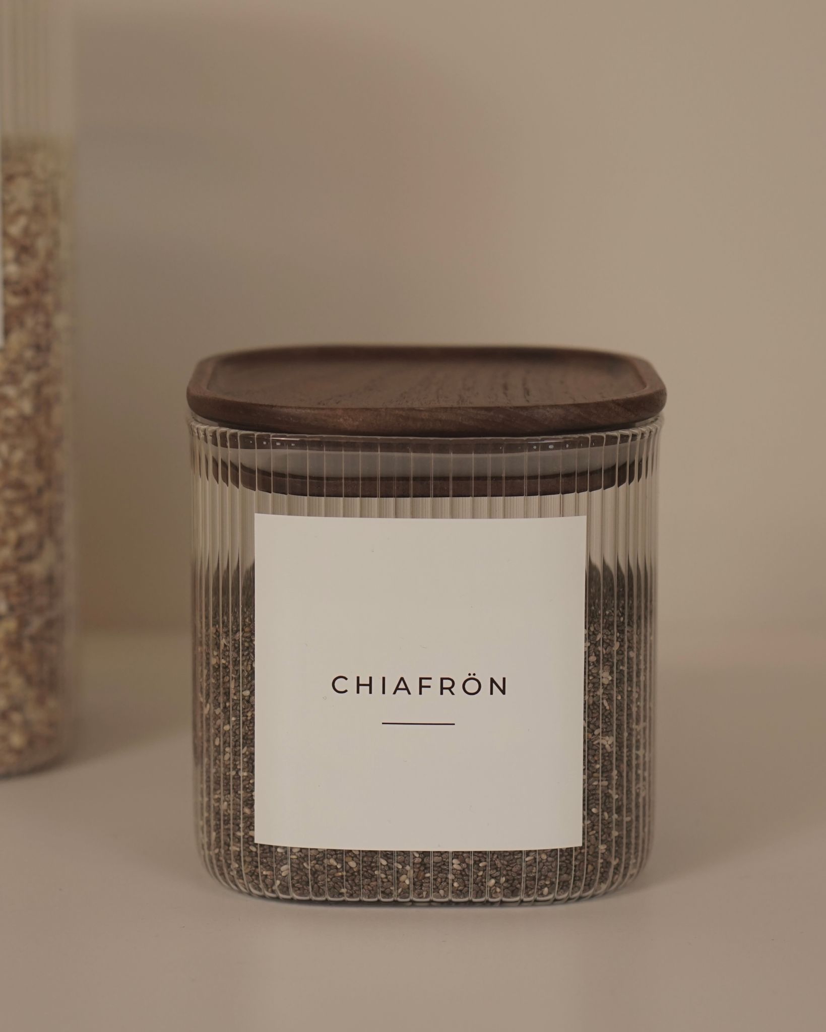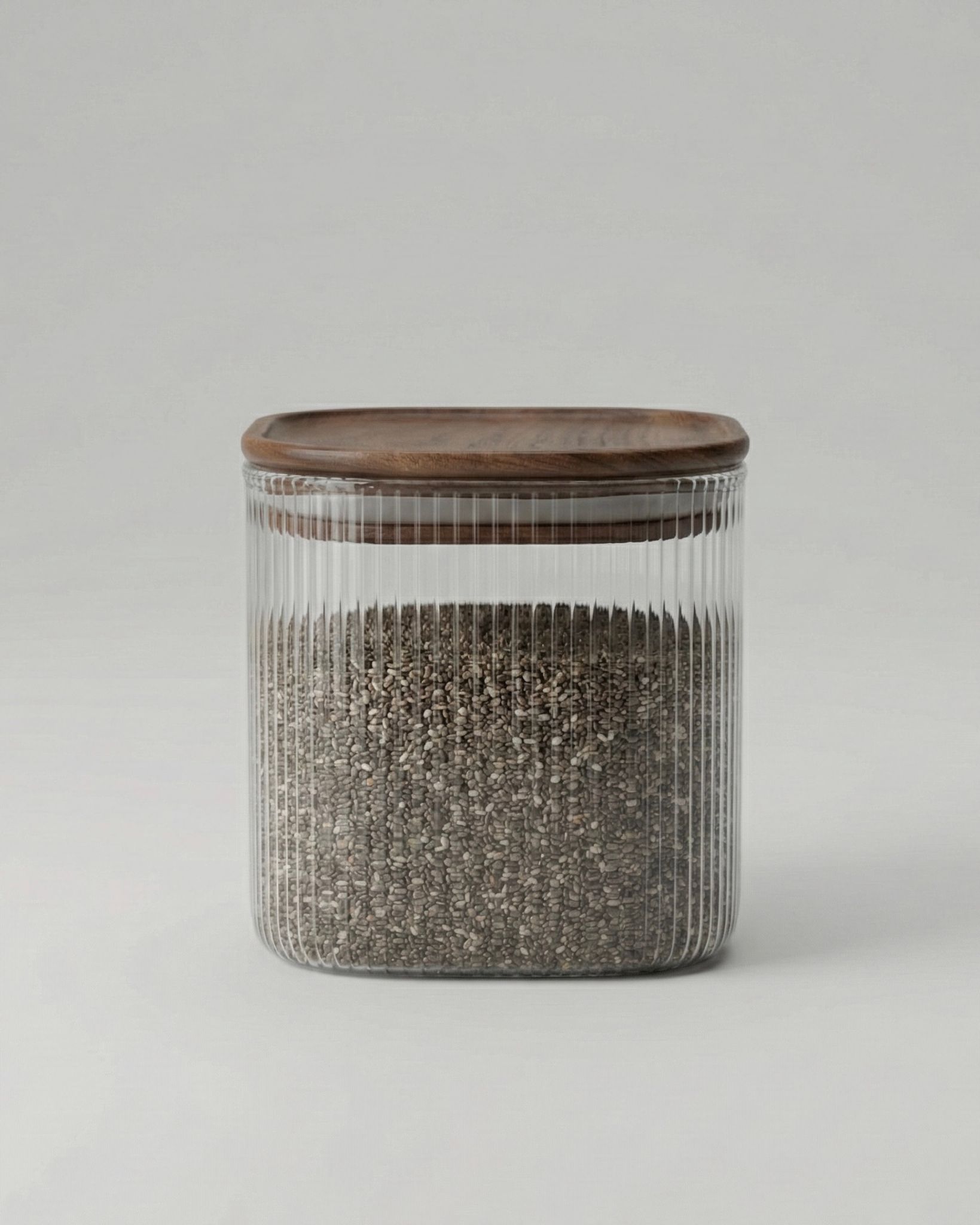 Skapa ett harmoniskt hem med tidlös design och naturliga material. Förvaringsburken LEIA kombinerar exklusivt räfflat glas med ett gediget lock i äkta valnöt. Den fyrkantiga formen är inte bara estetiskt tilltalande utan också utrymmeseffektiv, vilket gör den idealisk för dig som vill maximera ordningen i skåp och hyllor utan att tumma på stilen.
