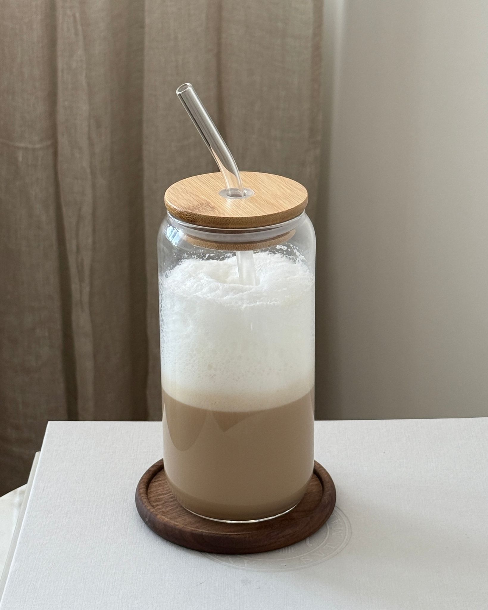 Upptäck elegansen i detta glas med lock och sugrör som kombinerar skandinavisk estetik med funktionalitet. Glaset har en generös kapacitet, perfekt för drycker som läsk, juice eller is-latte. Lock i bambu och ett återanvändbart sugrör i glas gör drickandet enkelt och bekvämt utan spill.