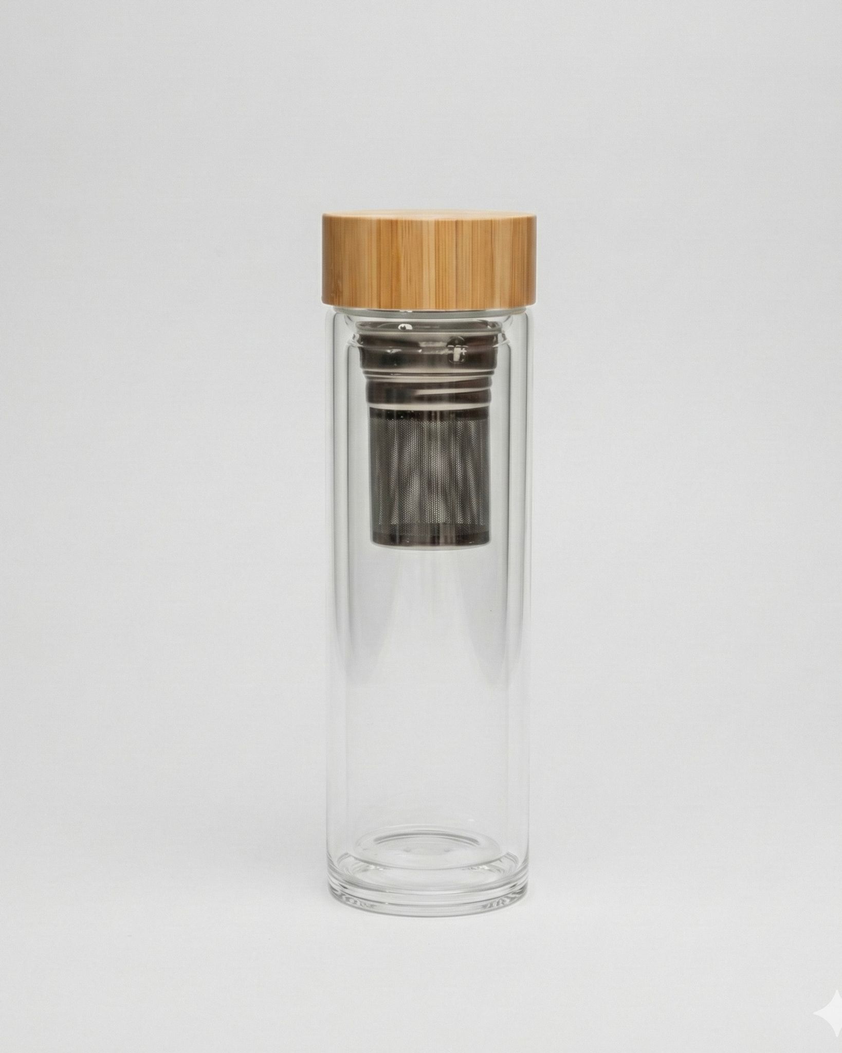 Upptäck vår eleganta glasflaska med teinsats som förenar funktion med stil. Med en avtagbar tesil i rostfritt stål kan du enkelt brygga ditt favoritlös-te direkt i flaskan. Det dubbla glasväggsystemet garanterar att din dryck håller sig varm eller kall i upp till en timme, samtidigt som det robusta glaset klarar av temperaturförändringar.