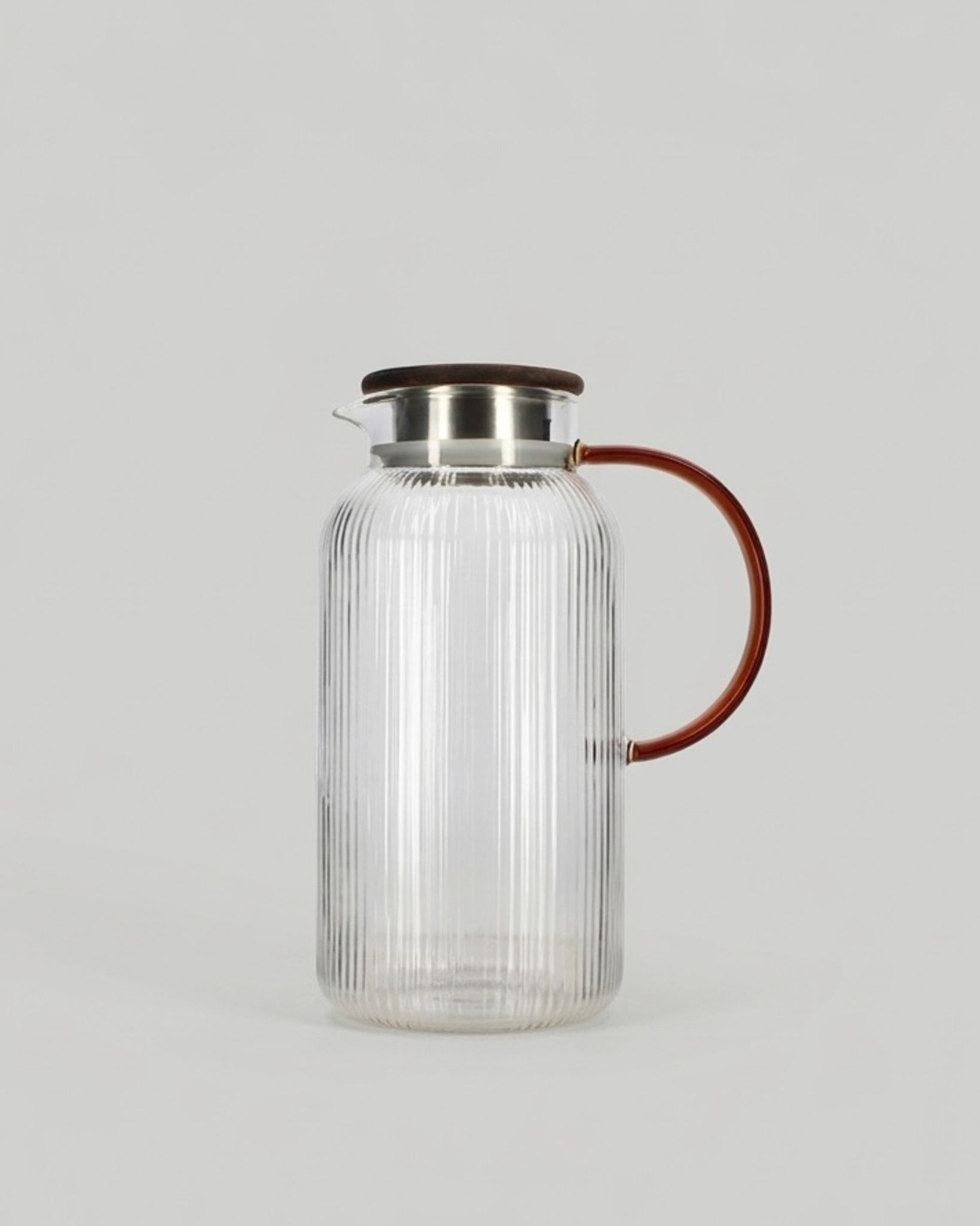 Upptäck den stilrena och funktionella Glaskanna med bärnstensfärgat handtag – en oumbärlig detalj för varje hem. Den transparenta glasdesignen ger ett modernt och sofistikerat utseende, vilket tillför en elegant touch till vilket bord som helst, oavsett om det är hemma, på kontoret eller vid sammankomster med vänner.