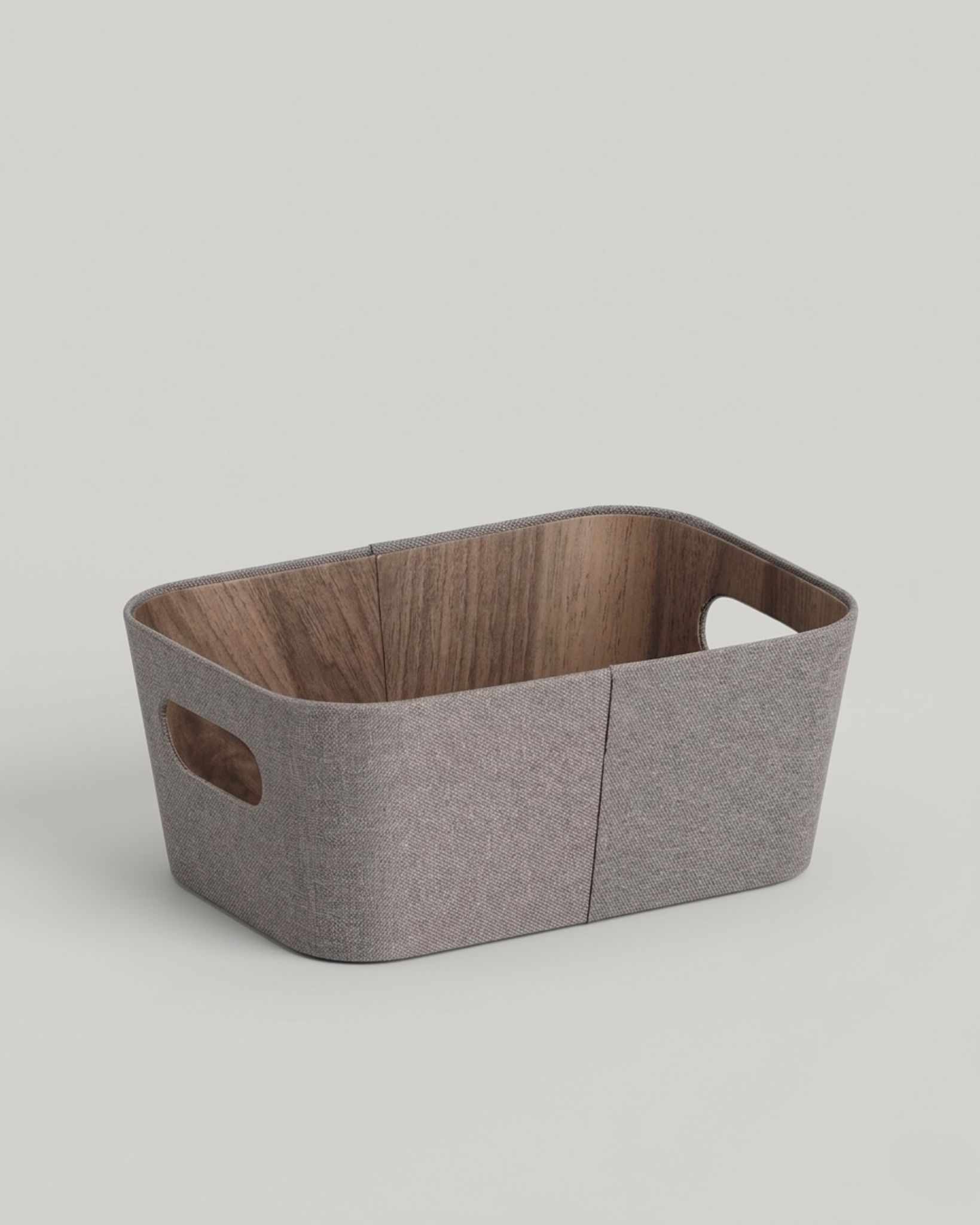 Upptäck vår stilrena grå förvaringslåda som kombinerar funktionalitet med elegant design. Denna förvaringslåda är klädd i ett mjukt, grått tyg som ger en modern och tidlös känsla till vilket rum som helst. Insidan är smakfullt utformad med en träfinish som tillför en varm och naturlig touch.