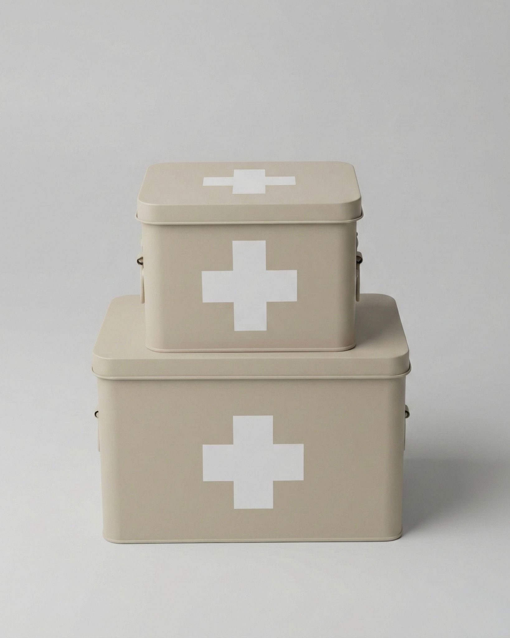 Denna medicinlåda i beige metall kombinerar funktionalitet med stilren design, vilket gör den till ett perfekt tillskott i ditt hem. Lådan är tillverkad av robust metall och har en elegant beige färg som smälter in i alla interiörer. Försedd med ett tydligt vitt korsmärke på locket, säkerställer den enkel identifiering av medicinsk förvaring.