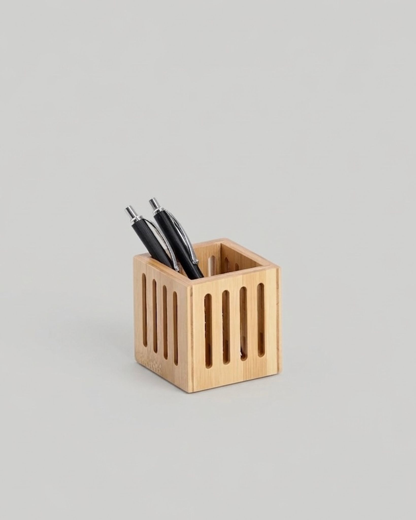 Ett skrivbord där pennor, linjaler och småsaker ligger utspridda skapar snabbt ett visuellt kaos som dränerar både energi och koncentration. När arbetsytan är rörig avbryts ditt flöde varje gång du tvingas leta efter något att skriva med, och den lilla röran bidrar till en växande inre stress under arbetsdagen. Genom att ge dina viktigaste verktyg en fast plats i en pennhållare i bambu förvandlas din arbetsyta från en källa till distraktion till en välordnad plats för fokus och kreativitet.