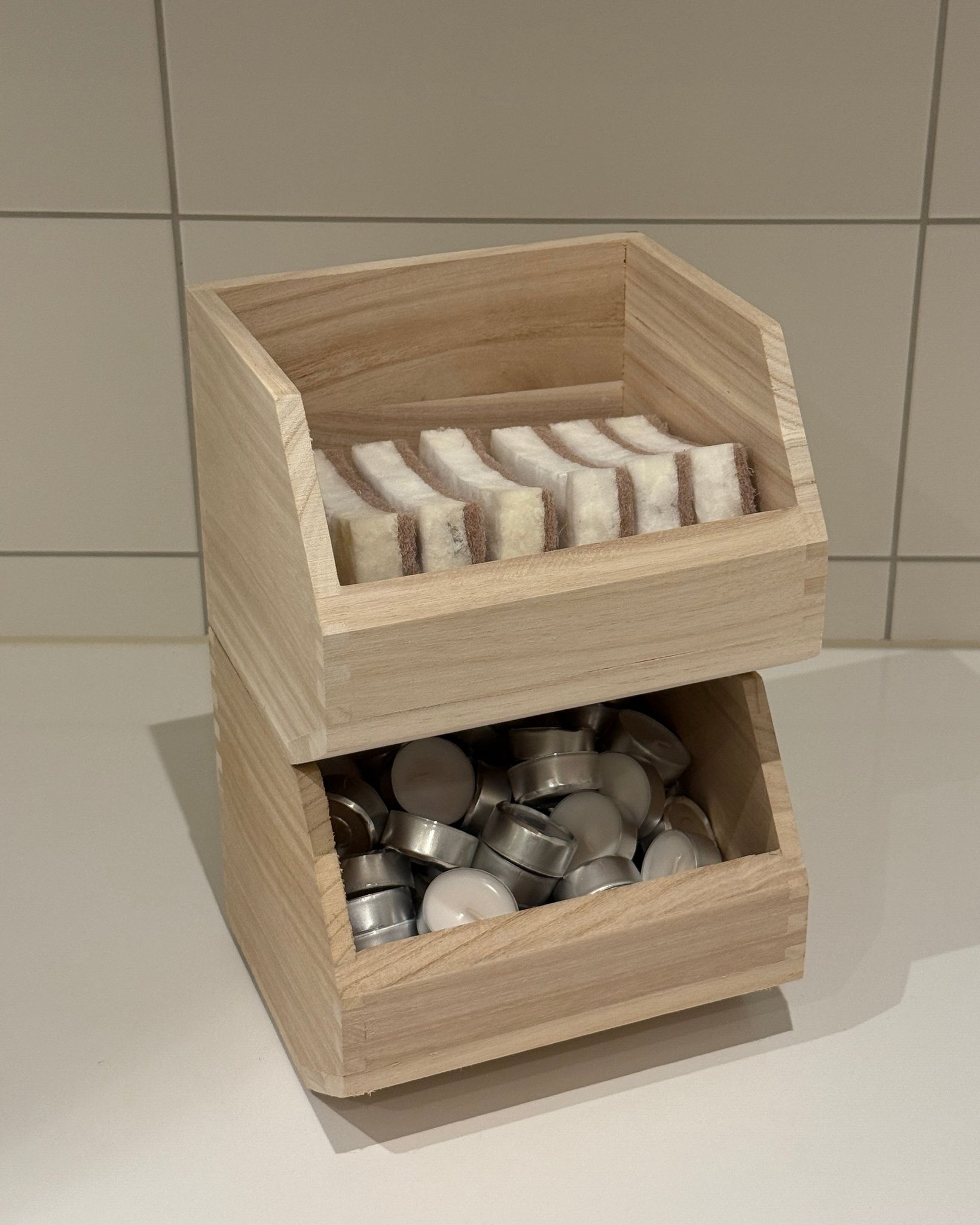 Stapelbar förvaringslåda i trä