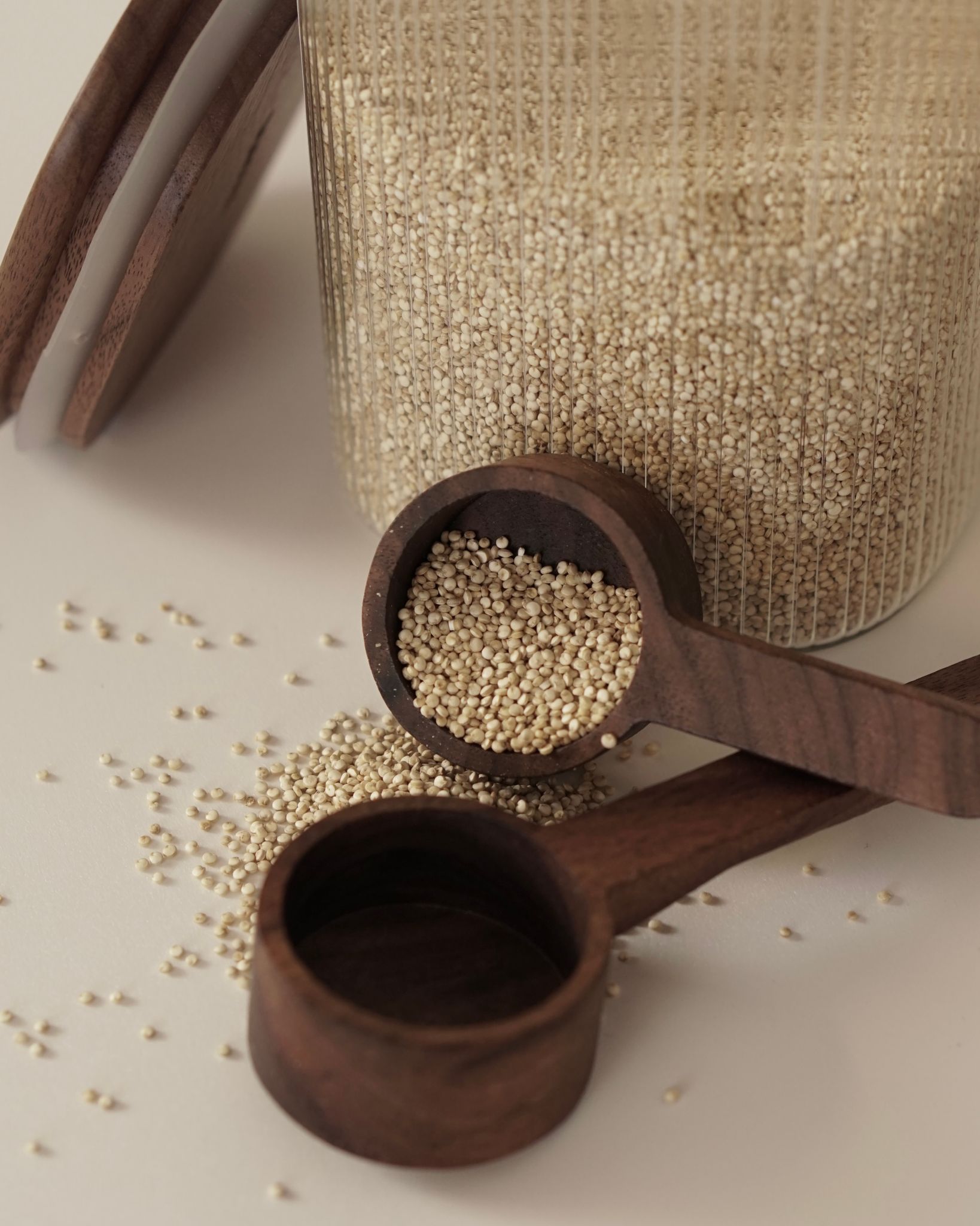 Med sin slanka form och ergonomiska design, ligger skeden bekvämt i handen och är perfekt för att mäta upp torra ingredienser som quinoa eller mjöl. Den naturliga trästrukturen ger varje sked en unik karaktär, medan den släta ytan säkerställer enkel rengöring och underhåll.