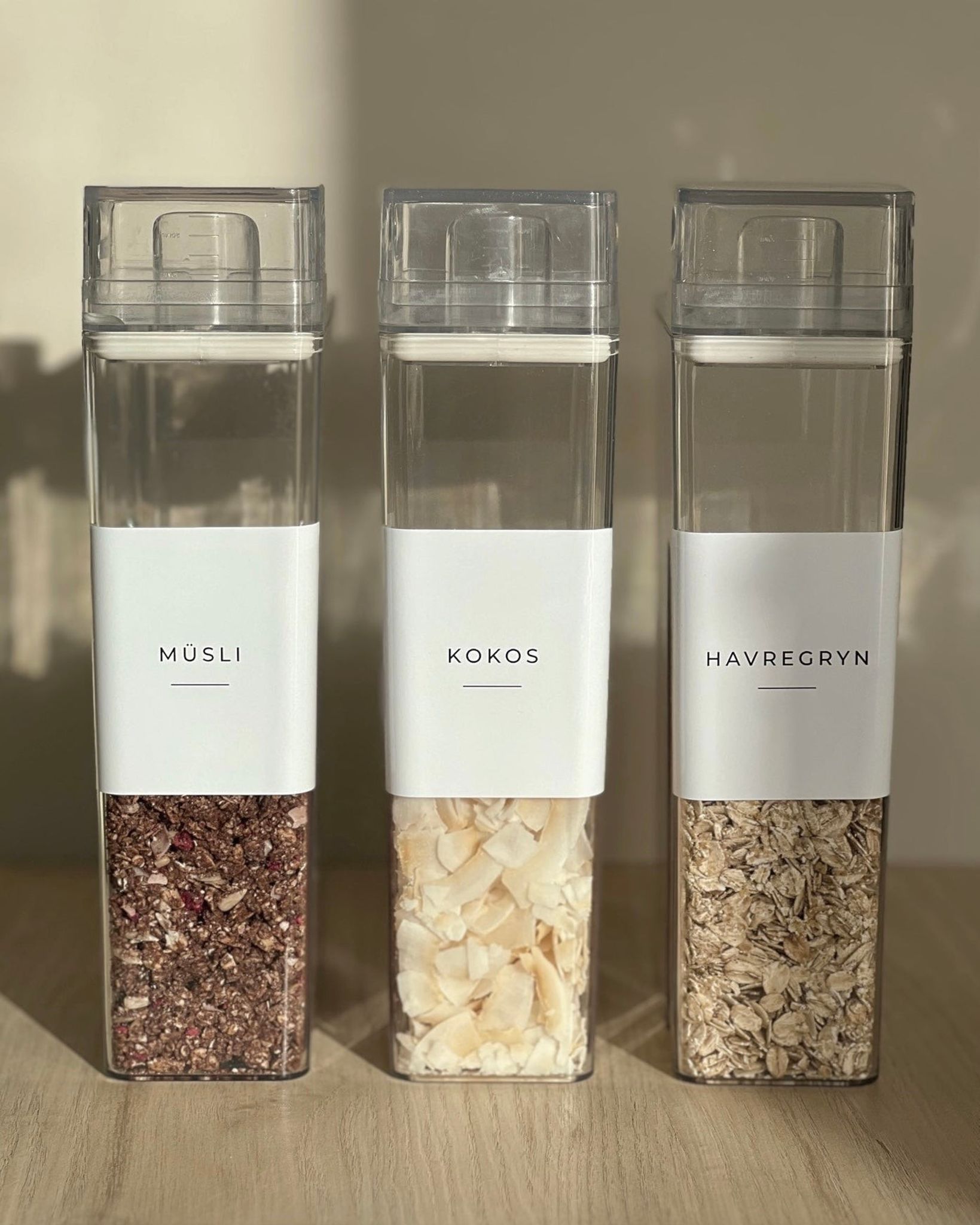 Tillverkade av högkvalitativ plast, erbjuder de en transparent design så att du enkelt kan se innehållet. De tättslutande locken säkerställer att ditt tvättmedel håller sig fräscht och skyddat mot fukt. Köp till etikett för enkel identifiering av innehållet.